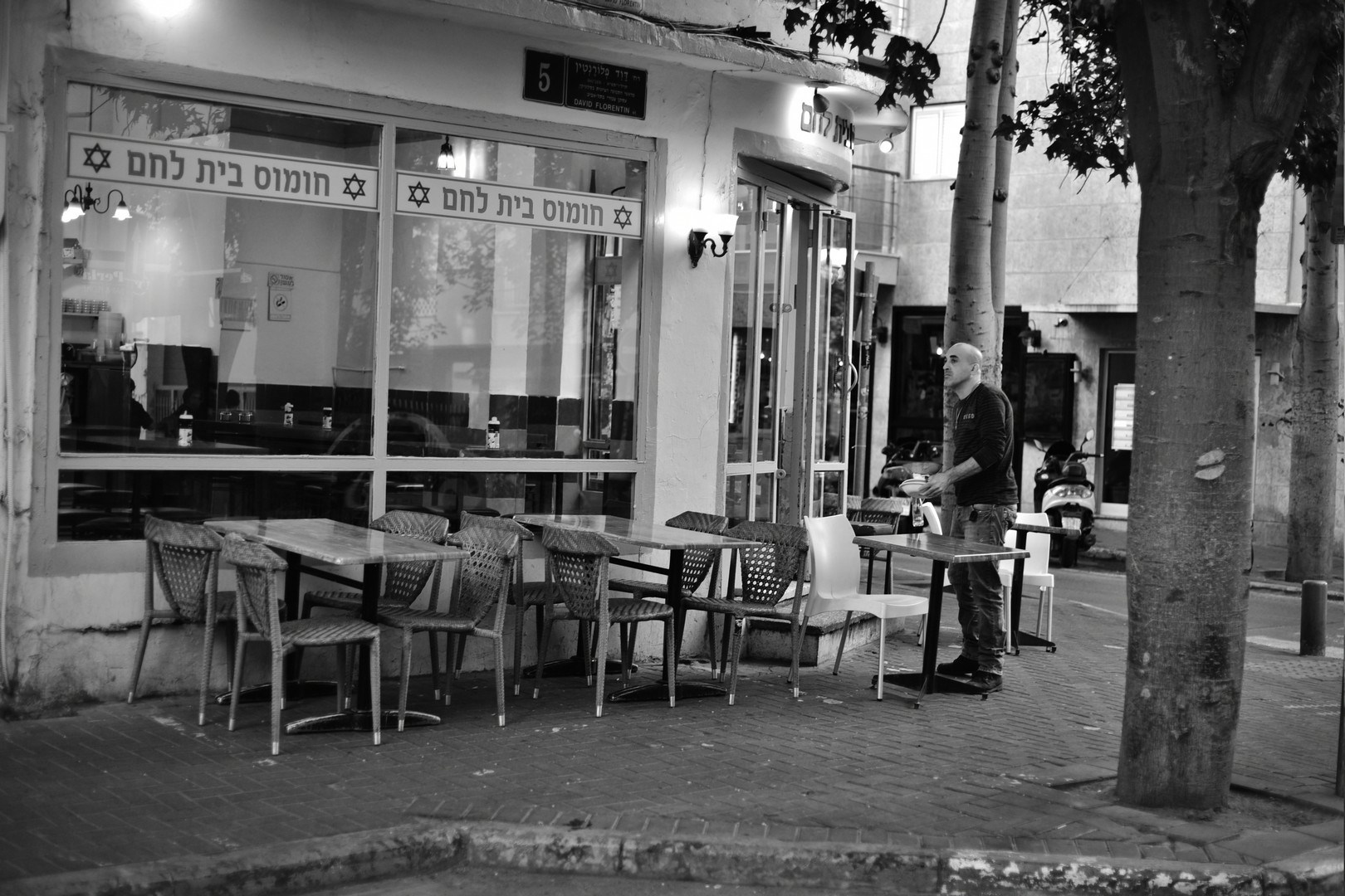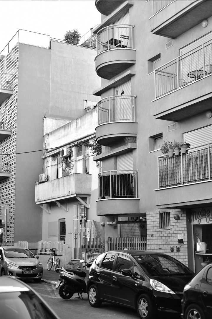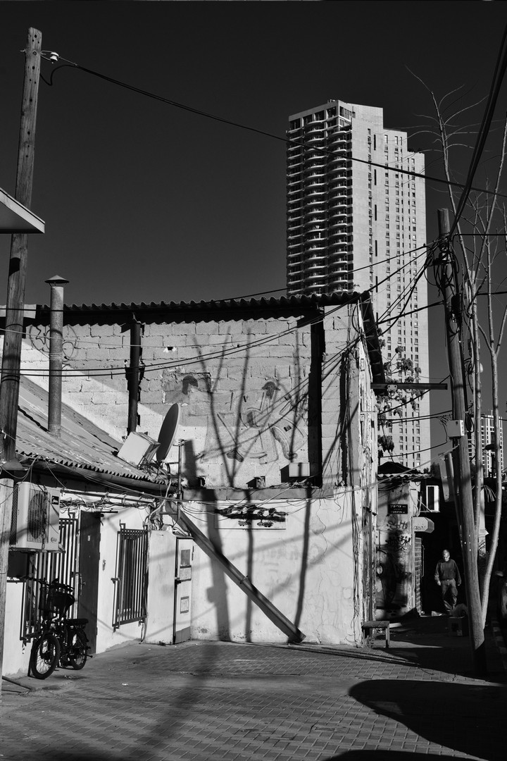 פלורנטין, שכונה צבעונית בתל אביב, בוקר צילומי בשחור לבן.