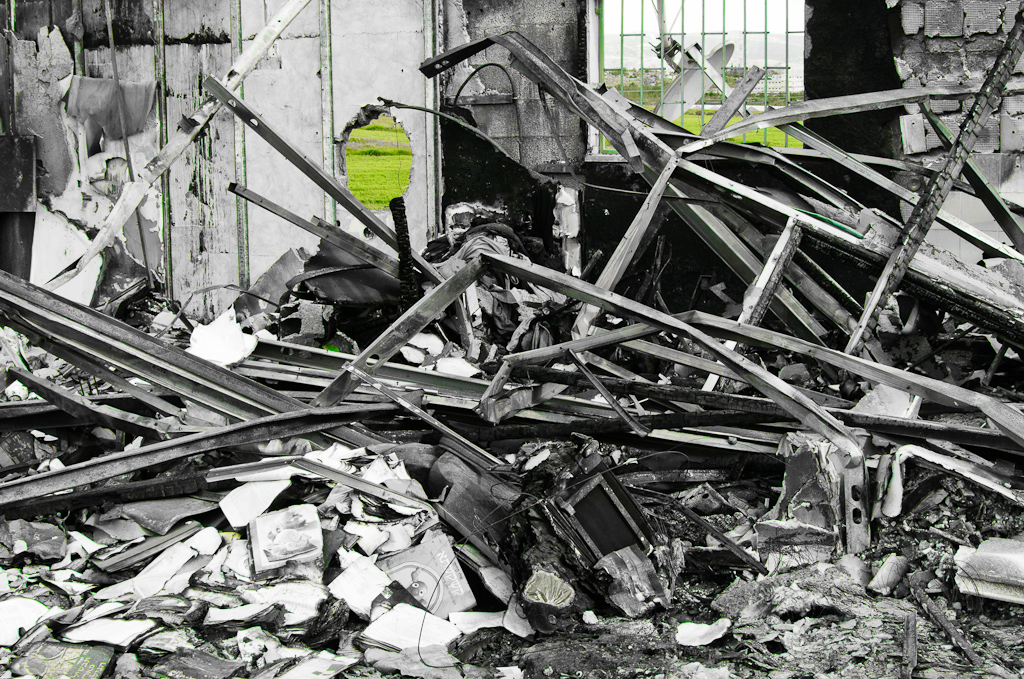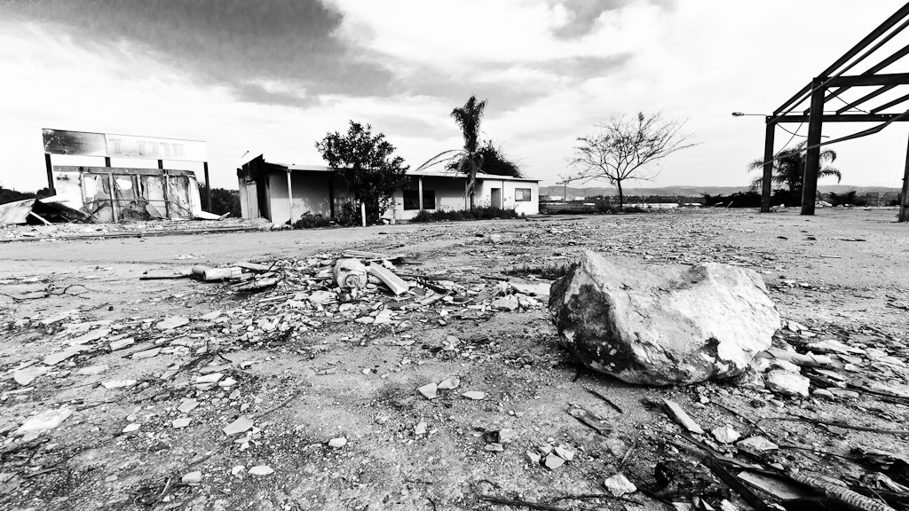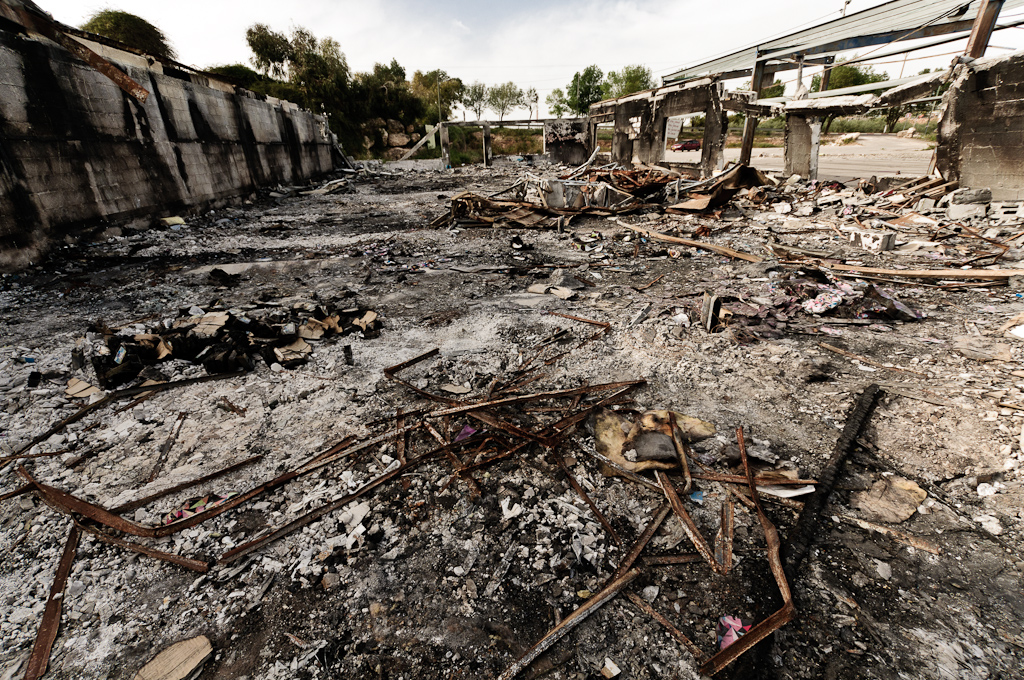 מרכז מסחרי קטן שפעל בשדות בדרך לכפר רות, עלה באש בתחילת 2012. באפריל הגעתי לשם עם D300 ועדשה רחבה. חלק מהדימויים משם נשארו טריים בזכרוני, ומתאימים לזמן הזה שאחרי השבעה באוקטובר. היום גם ערב יום הזיכרון לשואה ולגבורה.