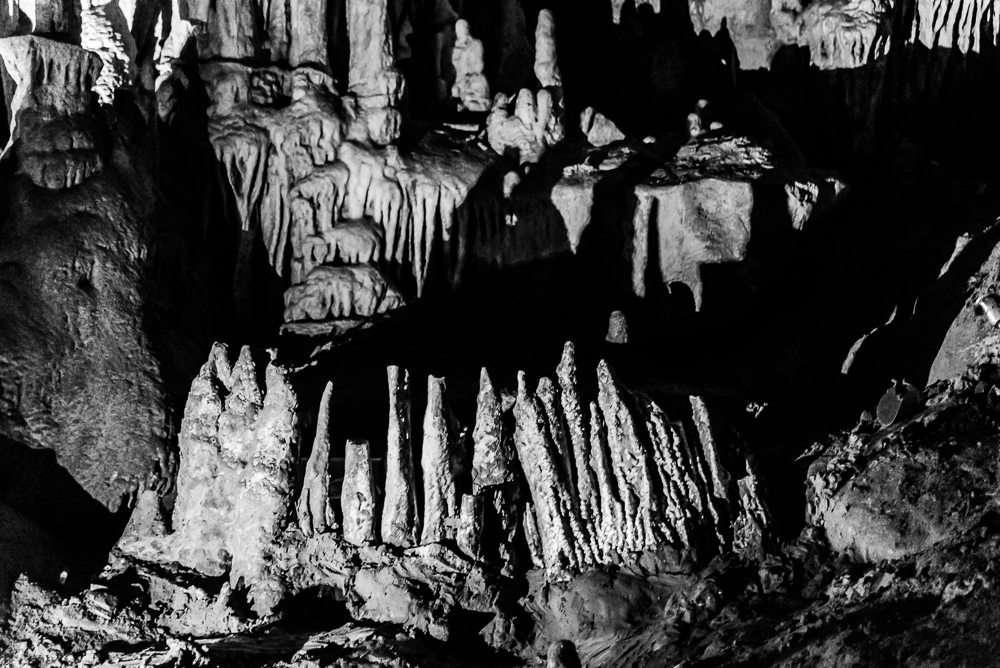 אז מסתבר שאם באים עם מצלמה טובה מאד, וממירים את הצילומים לשחור לבן – אפשר לנסות:) מערות הנטיפים בדרך כלל מוארות בתאורה צבעונית מלאכותית, שאינה קשורה למקום או לצבע הסלע.