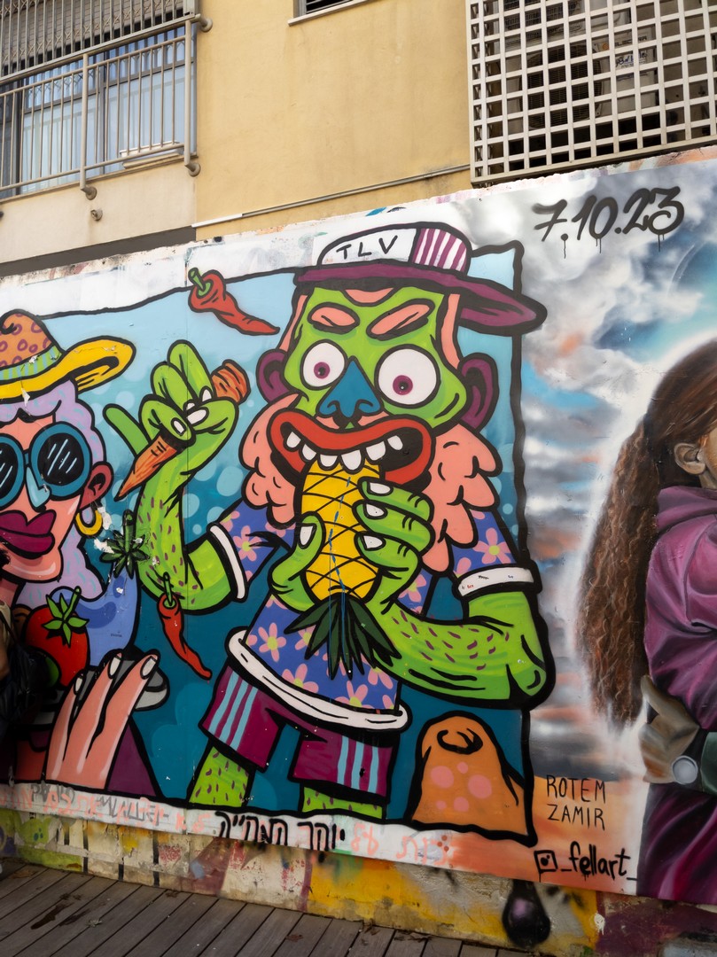 סיור עצמאי בתל אביב, בין הגרפיטי ברחובות המקבילים לשוקן (המפעל, המרץ) לשכונת פלורנטין. מלא ציורי גרפיטי חדשים. חלקם מוקדשים לדמויות מהשבעה לאוקטובר.