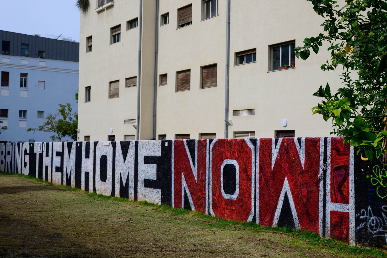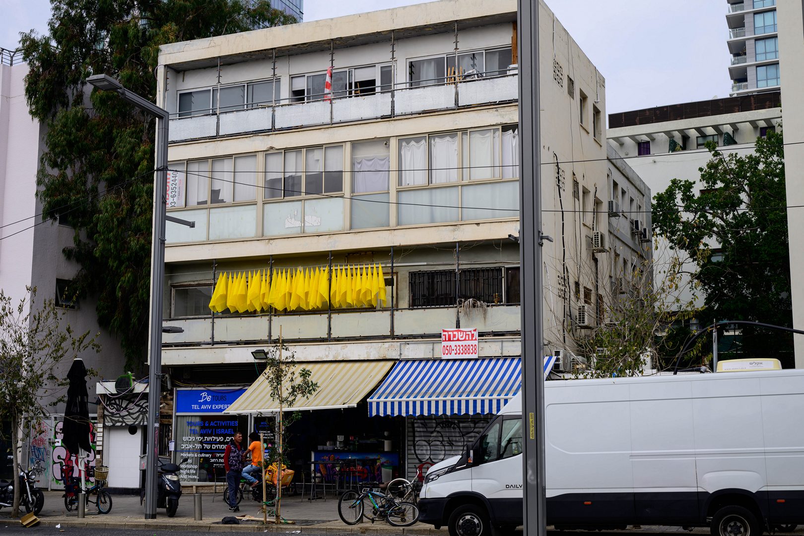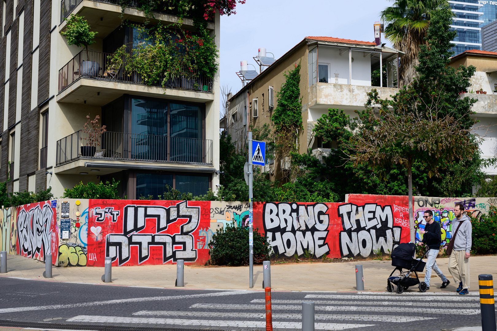 השבעה באוקטובר נוכח בעיר בצורת דכלים צהובים וגרפיטי הקורא לשחרור החטופים, ומנציח שמות נרצחים.